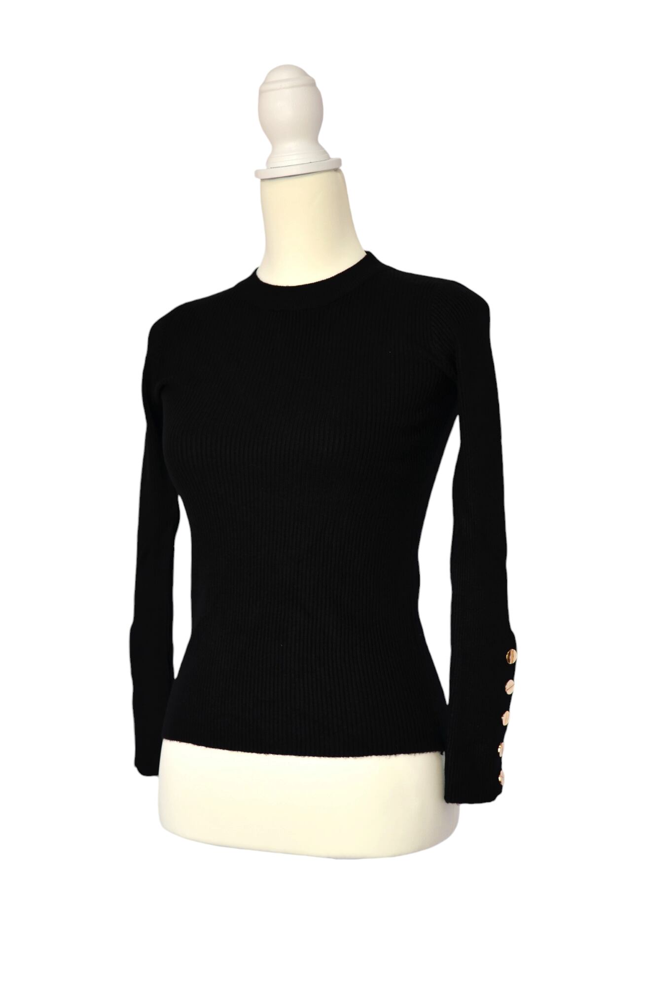 秋冬セータープルオーバー長袖ボタンゴールド