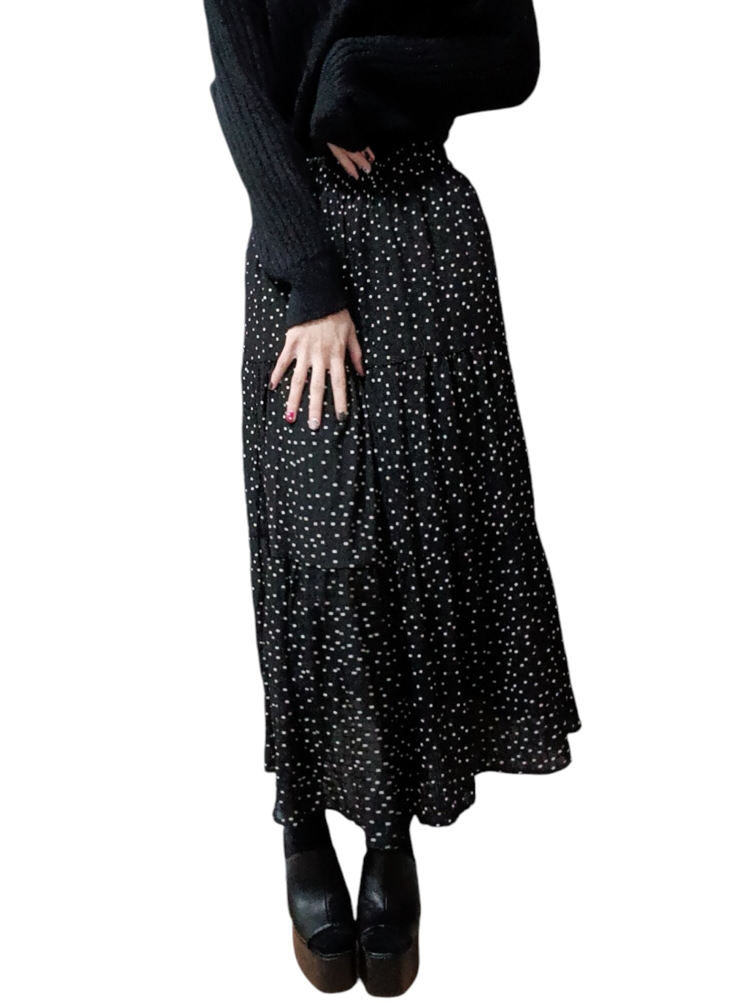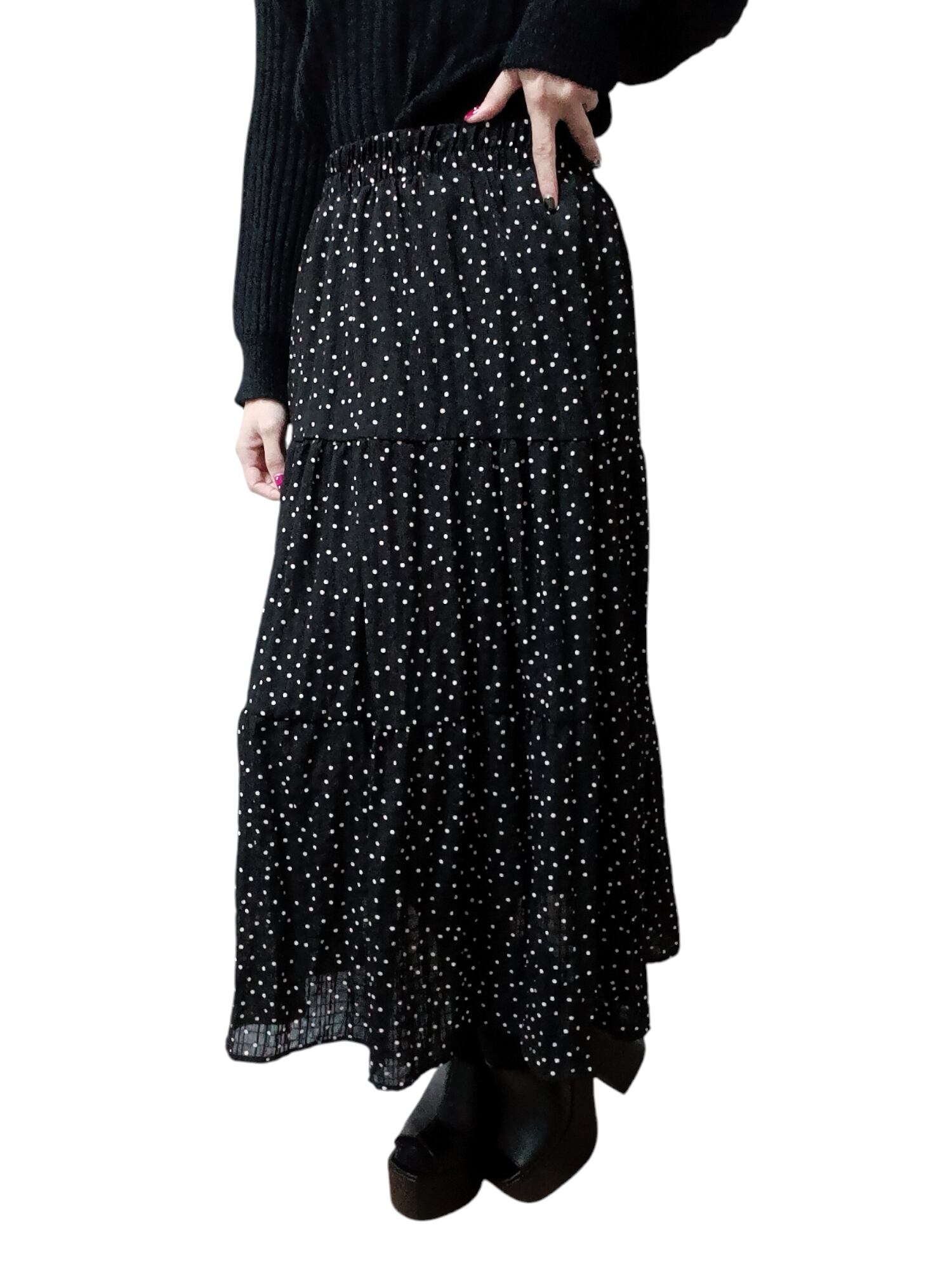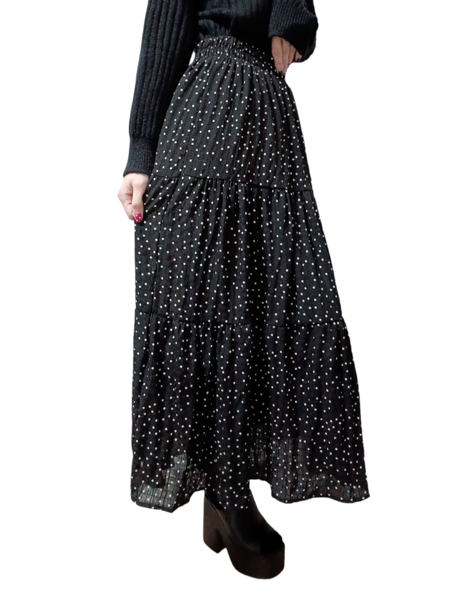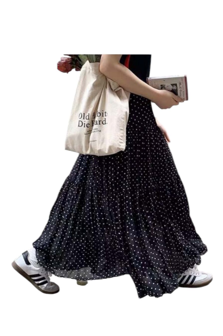 心地よさとおしゃれを両立させた春夏ドット柄ロングスカート