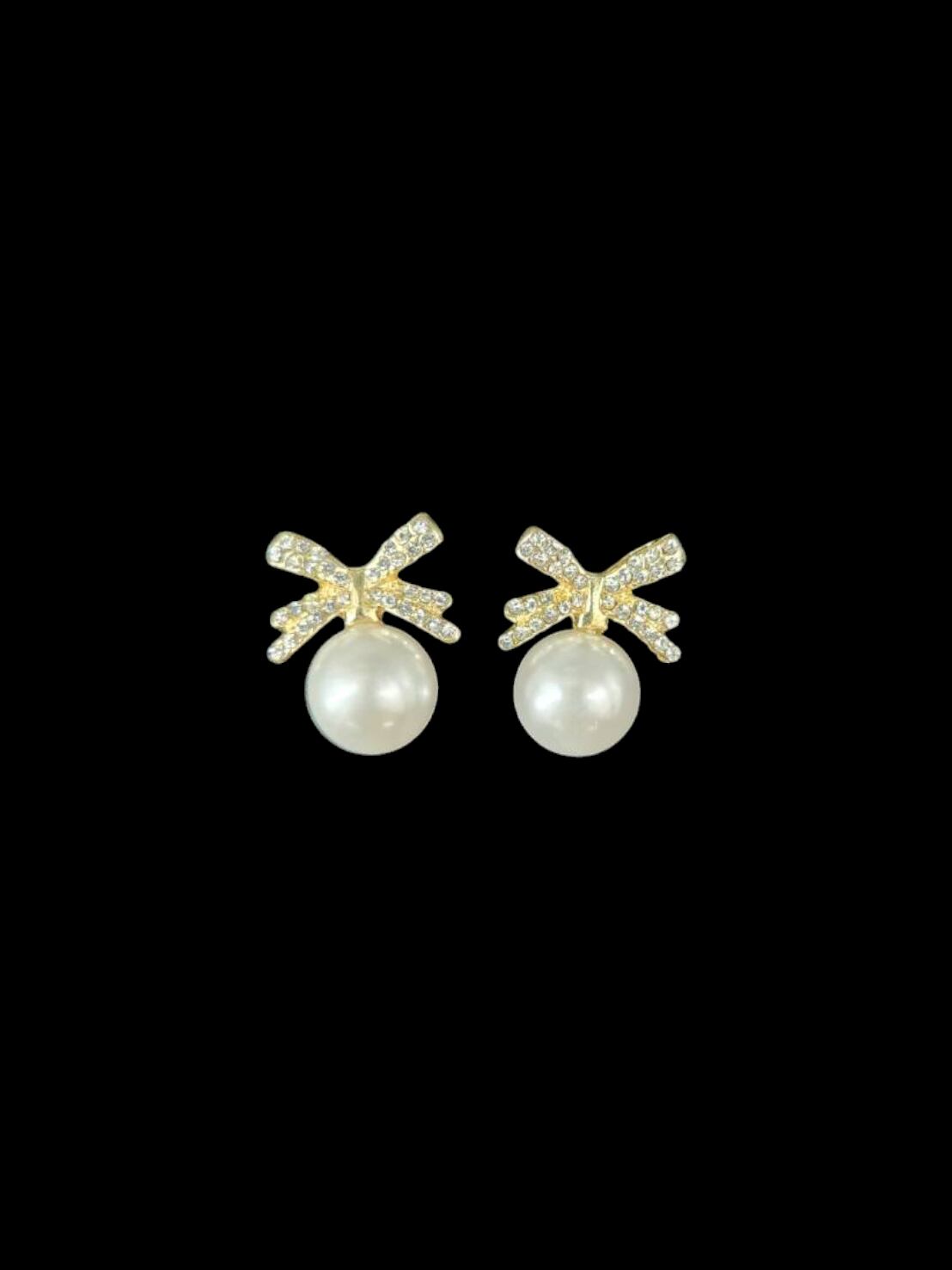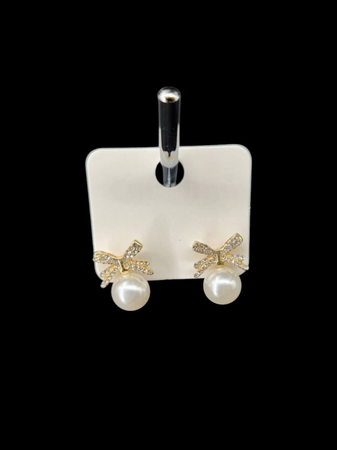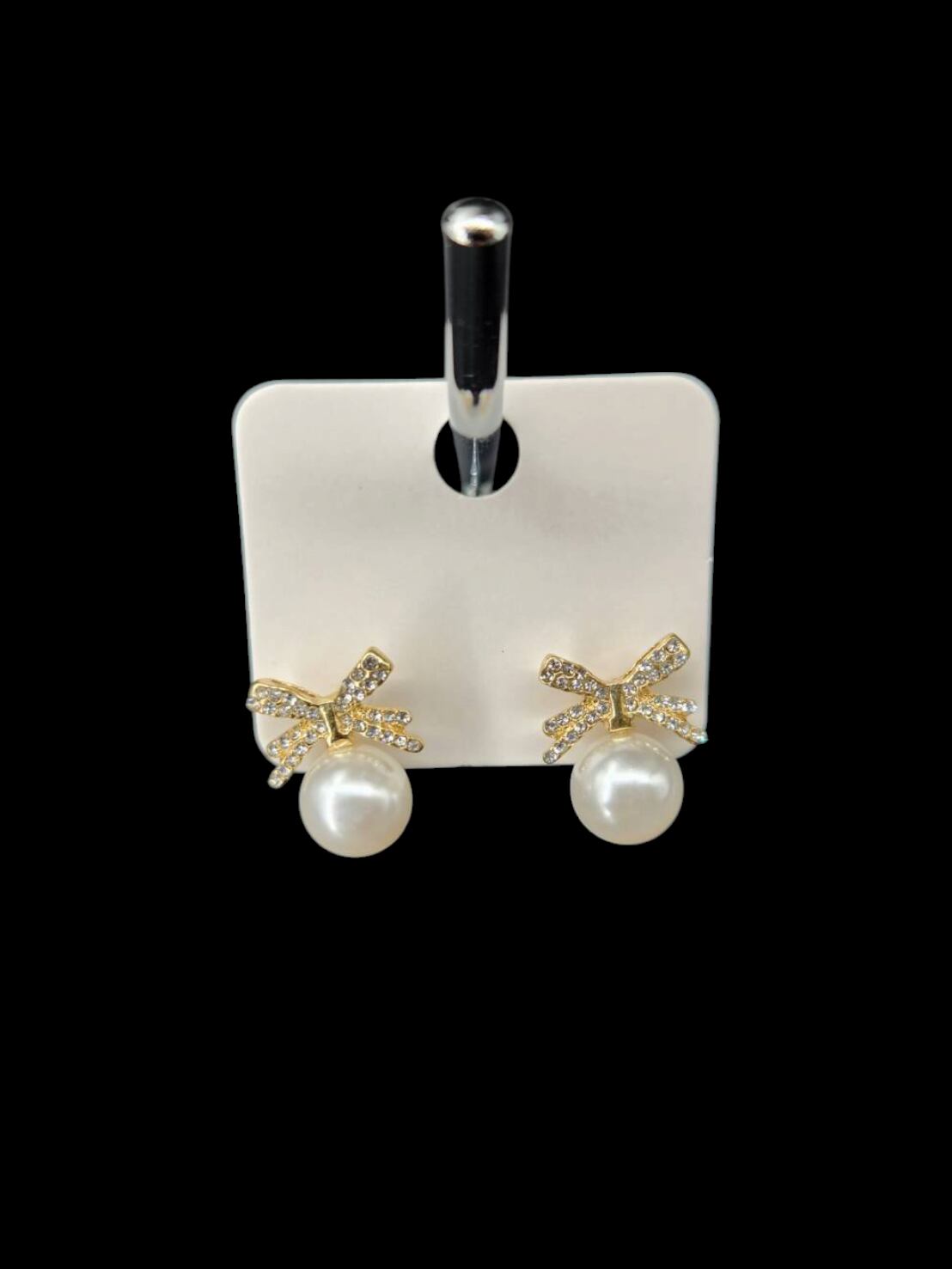 ピアス ゴールド リボン ストーン アクセサリー レディース